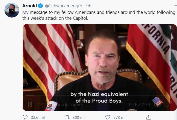 El actor y exgobernador republicano de California Arnold Schwarzenegger calificó al presidente estadounidense Donald Trump como el "peor presidente de la historia" y comparó el asalto al Capitolio con uno de los episodios más dramáticos del nazismo en Alemania.