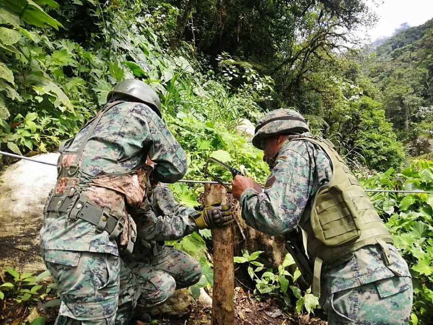 Militares ecuatorianos que dan protección y vigilancia al límite político internacional ejecutan acciones para destruir los pasos irregulares no autorizados que comunican a Ecuador con Colombia.