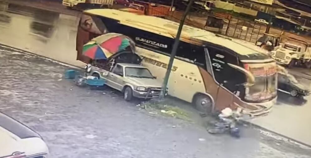 El accidente fue captado por una cámara de videovigilancia de un establecimiento cercano a las oficinas del Gobierno Provincial de Santo Domingo.