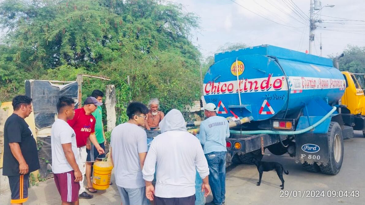 Interagua distribuye agua en siete zonas de Posorja debido al derrame de combustible en el canal Chongón-Cerecita-Playas, el pasado viernes 19 de enero.