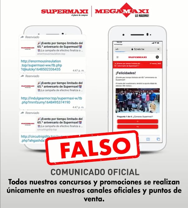 Corporación Favorita, propietaria de la cadena de supermercados Megamaxi, Supermaxi y Aki, alertó este martes sobre un caso de estafa que estaría utilizando el nombre de sus marcas en redes sociales.