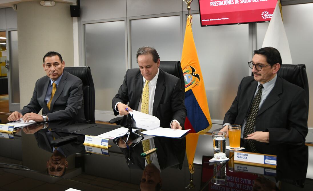 El Ministerio de Economía y Finanzas y el Instituto Ecuatoriano de Seguridad Social (IESS) firmaron la tarde de este martes, 31 de mayo de 2022, un convenio por el cual la cartera de Finanzas reconoce la deuda de Salud que se ha venido arrastrando por 21 años.
