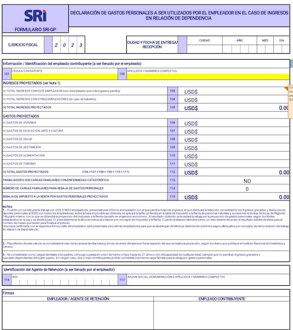 El Servicio de Rentas Internas (SRI) actualizó ya el formulario de proyección de gastos personales para que los trabajadores en relación de dependencia puedan actualizar sus gastos y aplicar al nuevo mecanismo de rebaja del impuesto a la renta que entró en vigencia con la Ley Orgánica para el Fortalecimiento de la Economía Familiar.