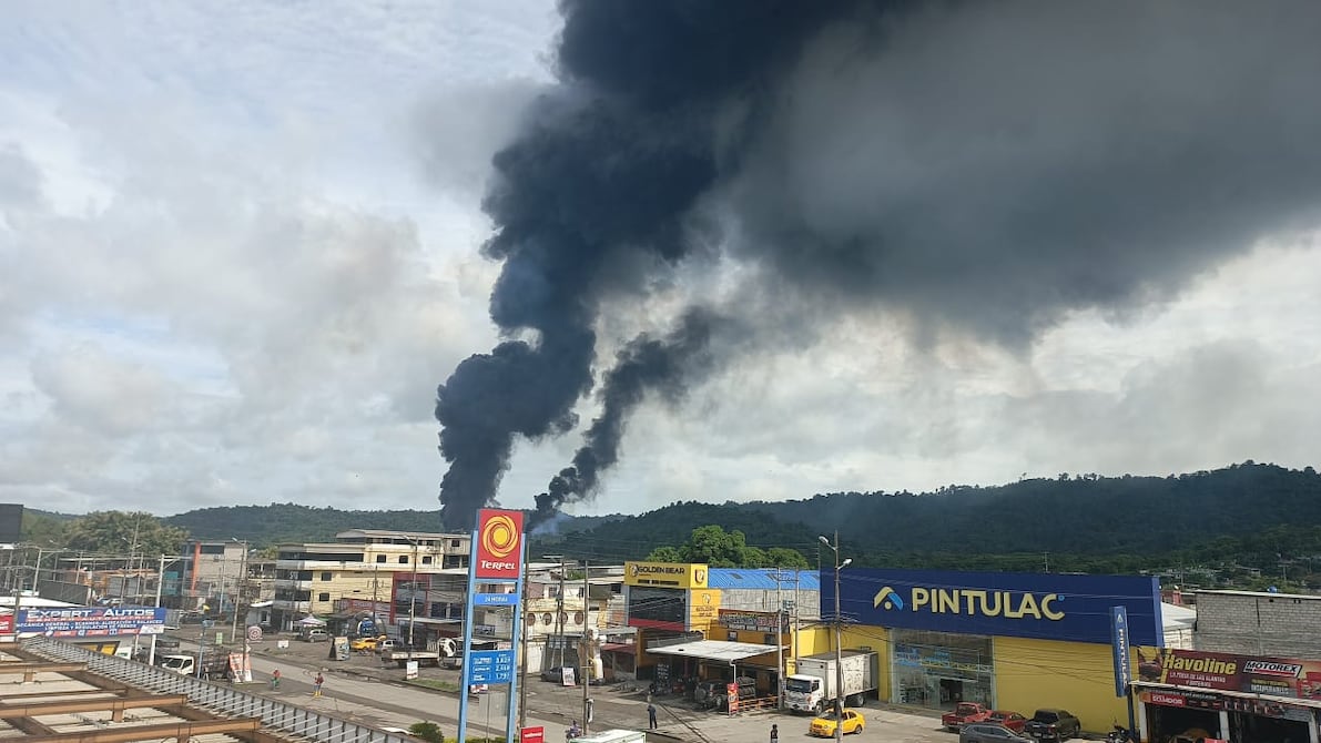 Una abundante columna de humo negro provocada por un incendio en la Refinería de Esmeraldas sorprendió a los habitantes y transeúntes que se encontraban en los alrededores de la planta industrial.