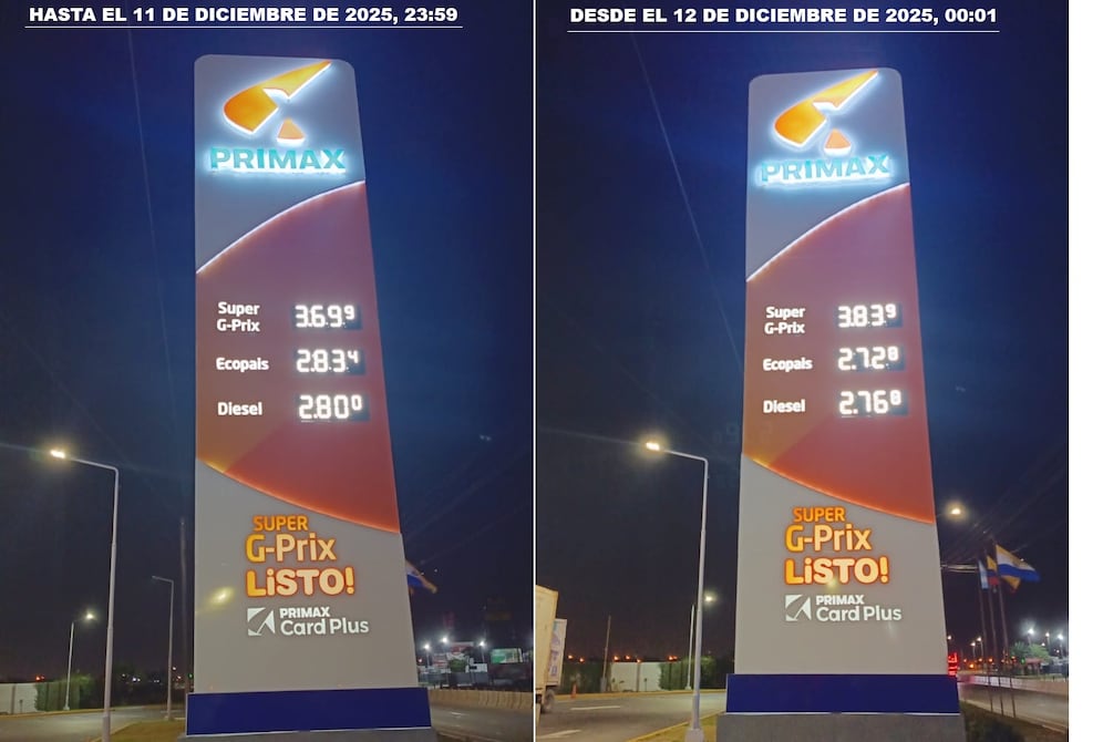 Desde las 00:01 de hoy, viernes 12 de diciembre de 2025, está vigente un nuevo precio del galón del diésel prémium y de las gasolinas extra, ecopaís y súper en el Ecuador.
