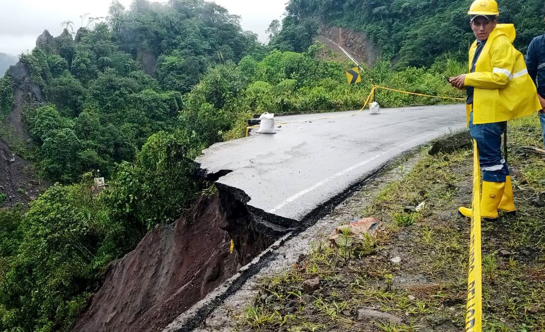 El Ministerio de Obras Públicas informó que la mesa de la vía Quito Lago Agrio fue destruida por efectos del fenómeno natural que afecta al sector
