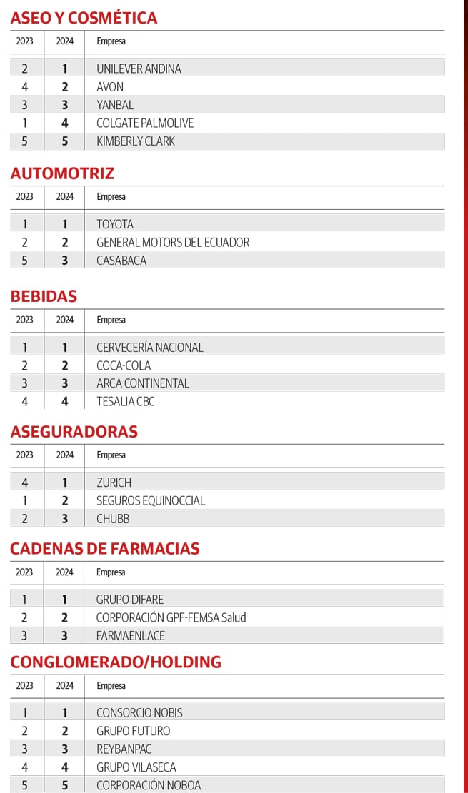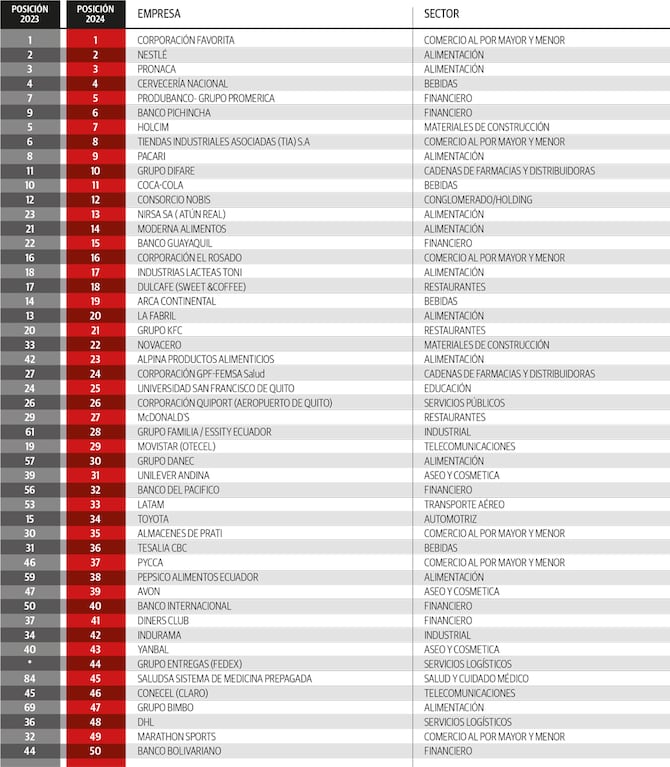 El TOP 100 de Reputación Corporativa agrupa a 23 sectores de la economía. De estos, Alimentos es el más numeroso, con 19 empresas, entre nacionales y multinacionales. En cantidad de compañías, le siguen Financiero, con 10, y Comercio al por mayor y menor, con 9. Otros, en cambio, aunque tienen menor número de empresas, muestran una presencia estable en el TOP 100, generalmente, con los mismos actores y sin mayor cambio de posiciones; es el caso de Bebidas, Cadenas de Farmacias y Transporte Aéreo.
