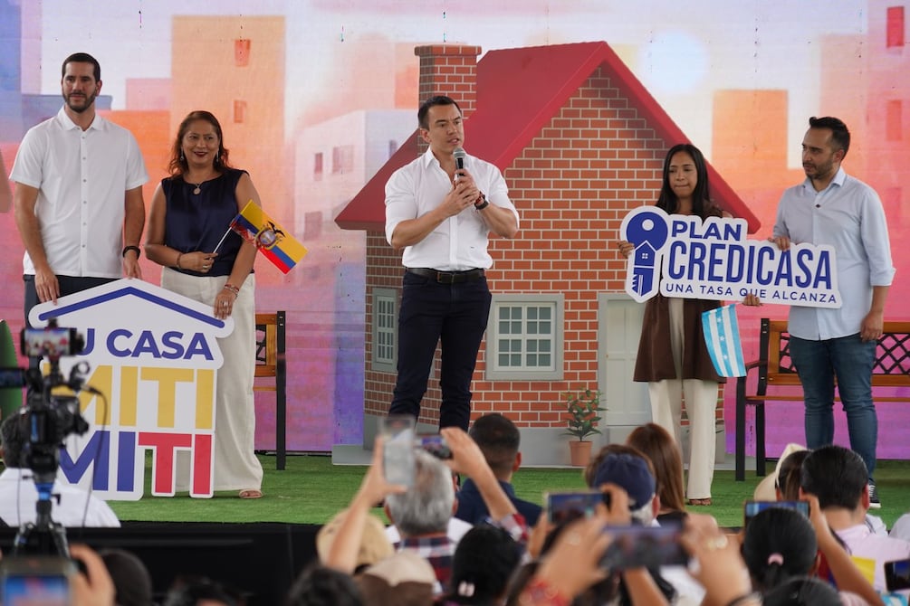 Mientras tanto, el primer mandatario destacó los tres programas que impulsa actualmente el Régimen: el Miti Miti, el crédito Mi Casa Propia del Banco del Pacífico con una tasa 4,87 %, y el nuevo programa Crédicasa, que según el primer mandatario nació de bajar el riesgo país y ordenar las finanzas del Ecuador. " Al ordenar las finanzas de un país las tasas bajan, al bajar las tasas podemos nosotros como Estado darles este beneficio a la gente". aseguró Noboa.
