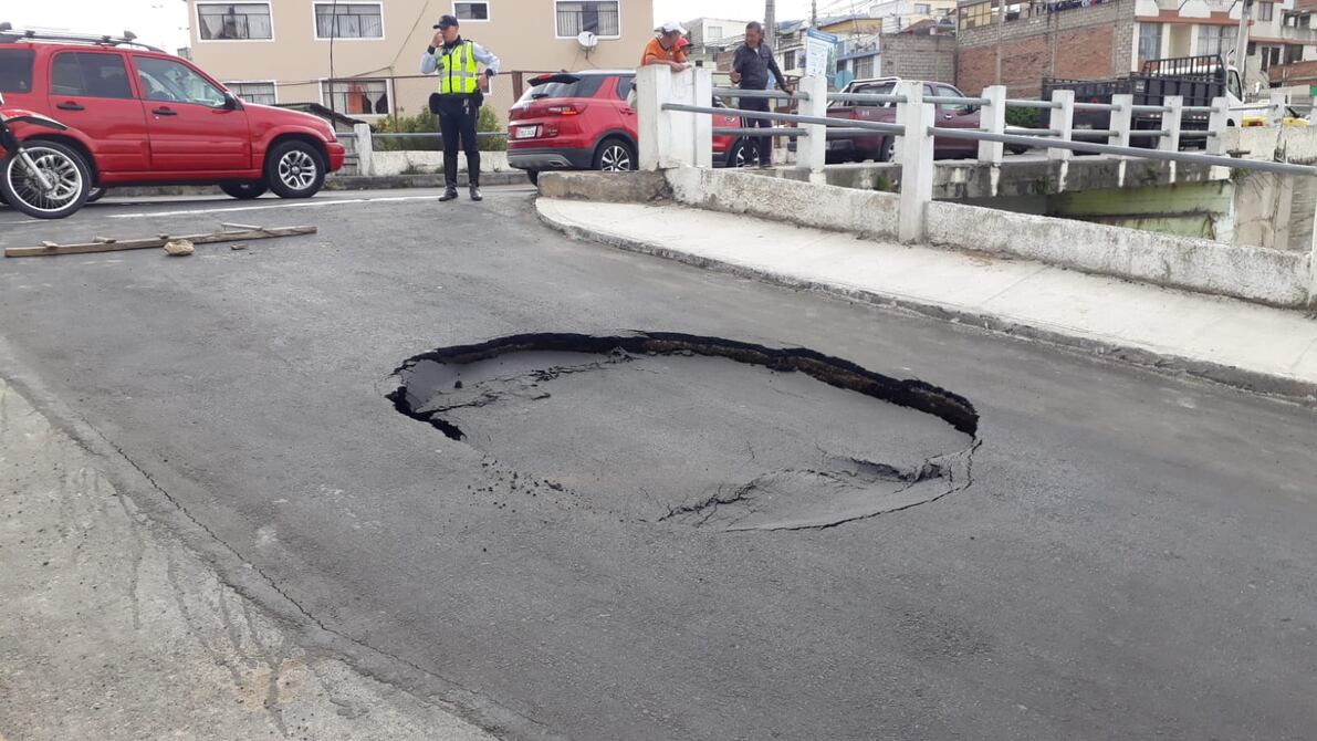 Agentes civiles de tránsito del Municipio de Ambato llegaron al lugar con el fin de restringir el paso de los automotores por el sitio.