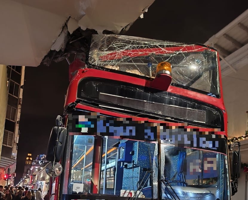 En el lugar, equipos corroboraron que el vehículo de dos pisos se estrelló contra el alero de un hotel.