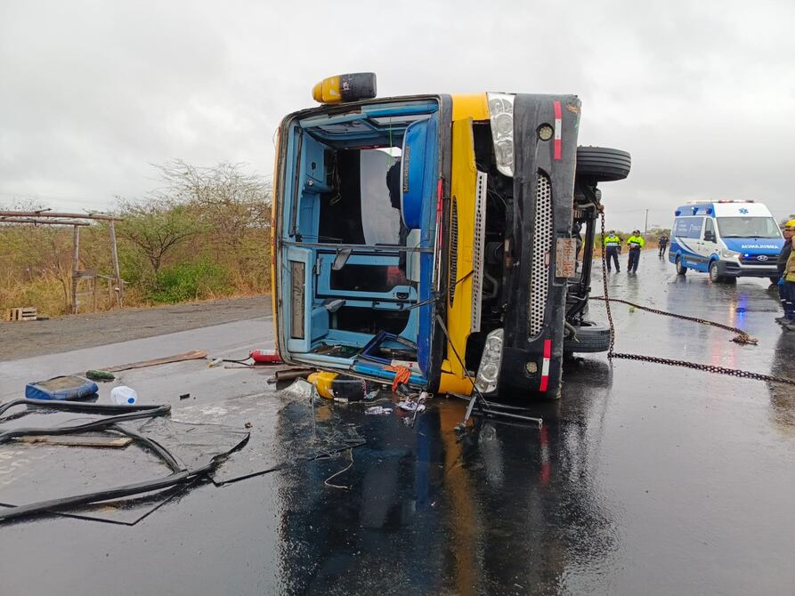 Un bus escolar e institucional perdió pista y se volcó en el kilómetro 52 de la vía Santa Elena-Guayaquil, pasando el sector de Buenos Aires.