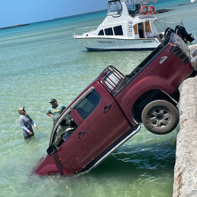 Una ocupante estaba en la cabina del automotor cuando este cayó al mar en el muelle El Embarcadero de Puerto Villamil.
