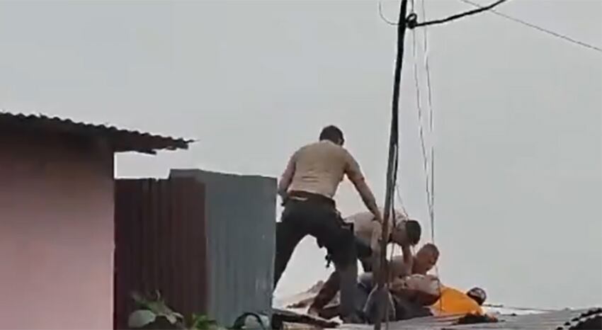 Dos ciudadanos corrieron hasta el techo de zinc en una especie de bodega ubicada en Santo Domingo de los Tsáchilas, luego llegaron agentes de la Policía Nacional, era parte de un operativo para capturar a un presunto delincuente, sin embargo, la estructura cedió y todos cayeron.