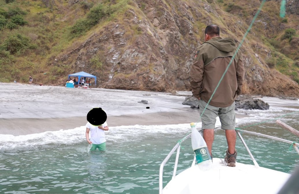 Una lancha con un generador eléctrico entró a una playa del parque nacional Machalilla. En el lugar había turistas con cerveza y música a todo volumen.
