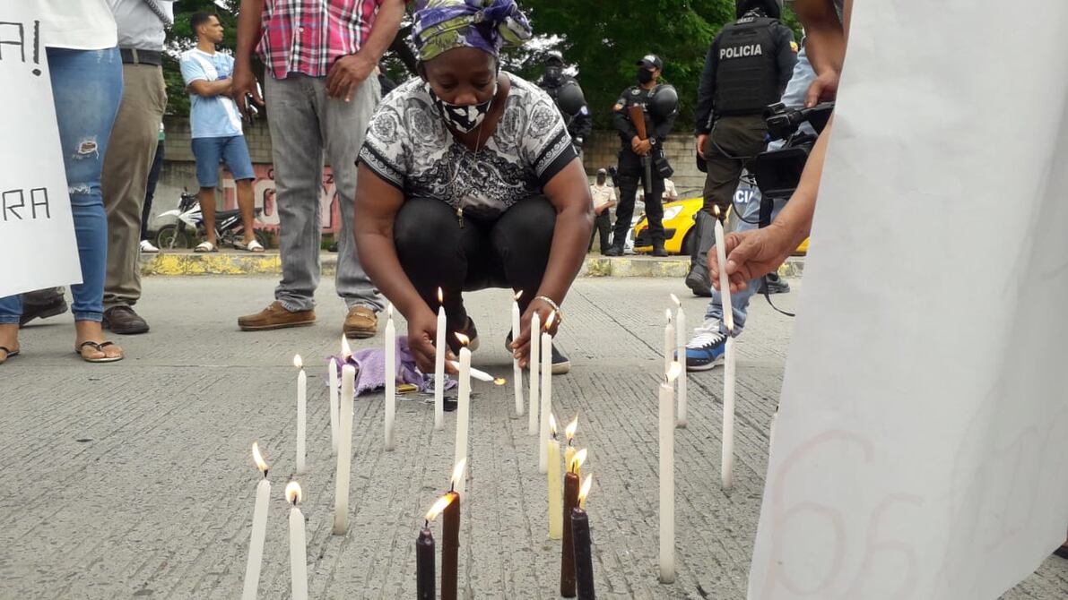 Con la colocación de velas encendidas en la calle y exponiendo carteles con leyendas, moradores reclamaron justicia por la muerte de una vecina luego de que fuera asaltada en el barrio Propicia Dos, en el sur de la ciudad de Esmeraldas.