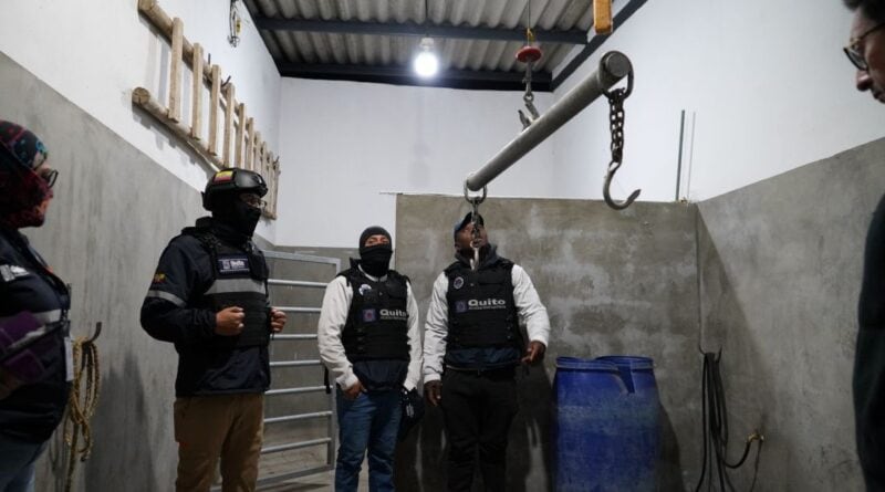Entidades capitalinas desarrollaron un operativo de control en un camal que no contaba con permisos de funcionamiento en Llano Grande, en el norte de Quito.