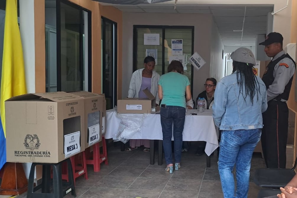 Los primeros electores colombianos llegaron antes de las 08:00 de este domingo al Consulado de Colombia en la ciudad de Esmeraldas para participar en las elecciones legislativas de su país.