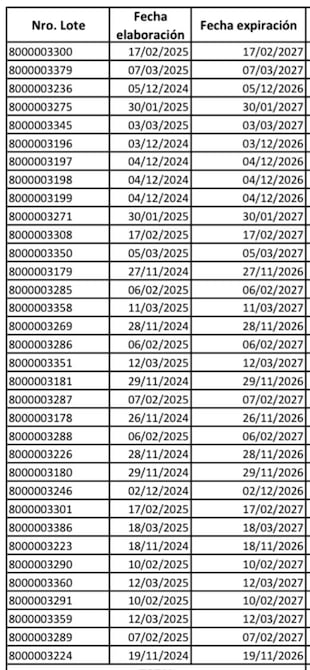 La autoridad recomendó a madres, padres y cuidadores verificar el número de lote del producto y, de contar con uno incluido en el retiro, abstenerse de su consumo y comunicarse con el Servicio al Consumidor 1800-ALULA3 (1800-258523).