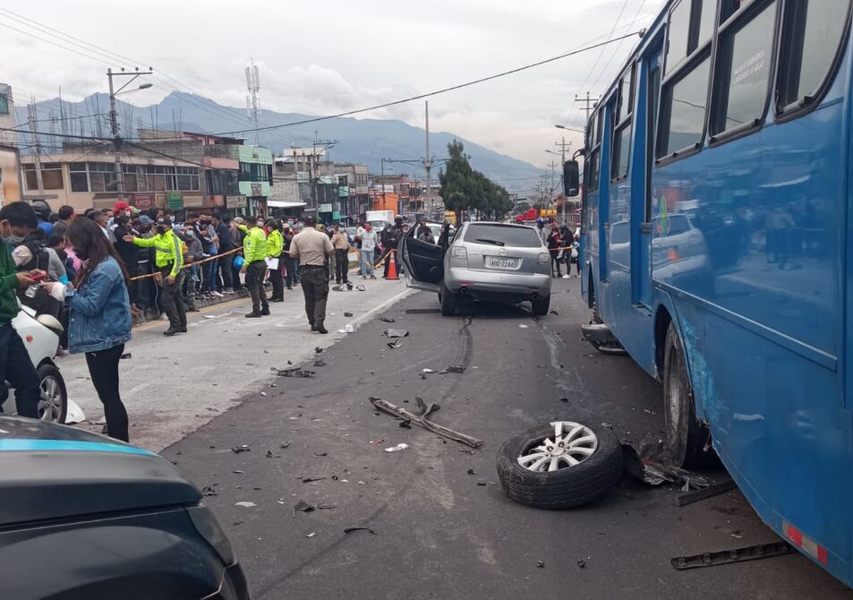 El sábado 16 de octubre, a la altura de la avenida Maldonado e Islas Malvinas, en el sur de Quito, un vehículo que transitaba por el carril exclusivo de la Ecovía se impactó contra otro carro particular y un bus.