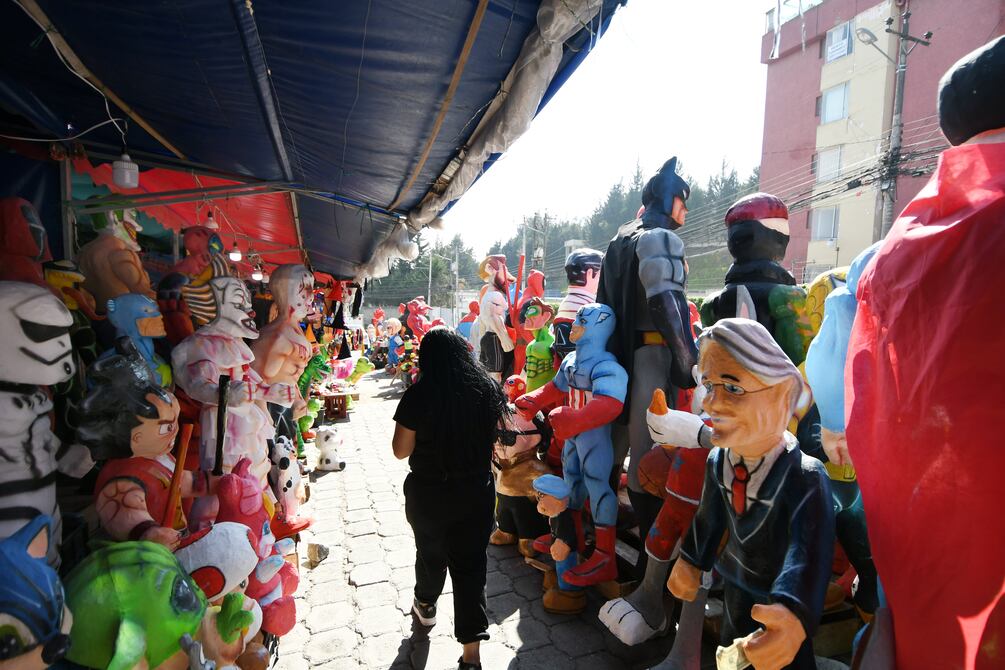 A pocos días para despedir el 2022, las ferias de venta de monigotes forman una colorida galería en las plazas y veredas de Quito. Los comerciantes ofertan los muñecos en precios desde $ 5 en adelante.