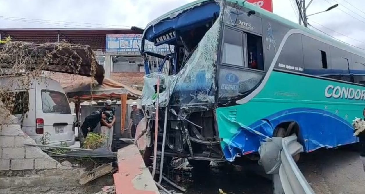 Los testigos del siniestro vial informaron que, al parecer, el bus de transporte interprovincial se quedó sin frenos y golpeó la parte posterior de la unidad de servicio urbano, así como al vehículo pequeño, para terminar impactándose contra las vallas de seguridad, lo que evitó que se impactara con una vivienda del sector.