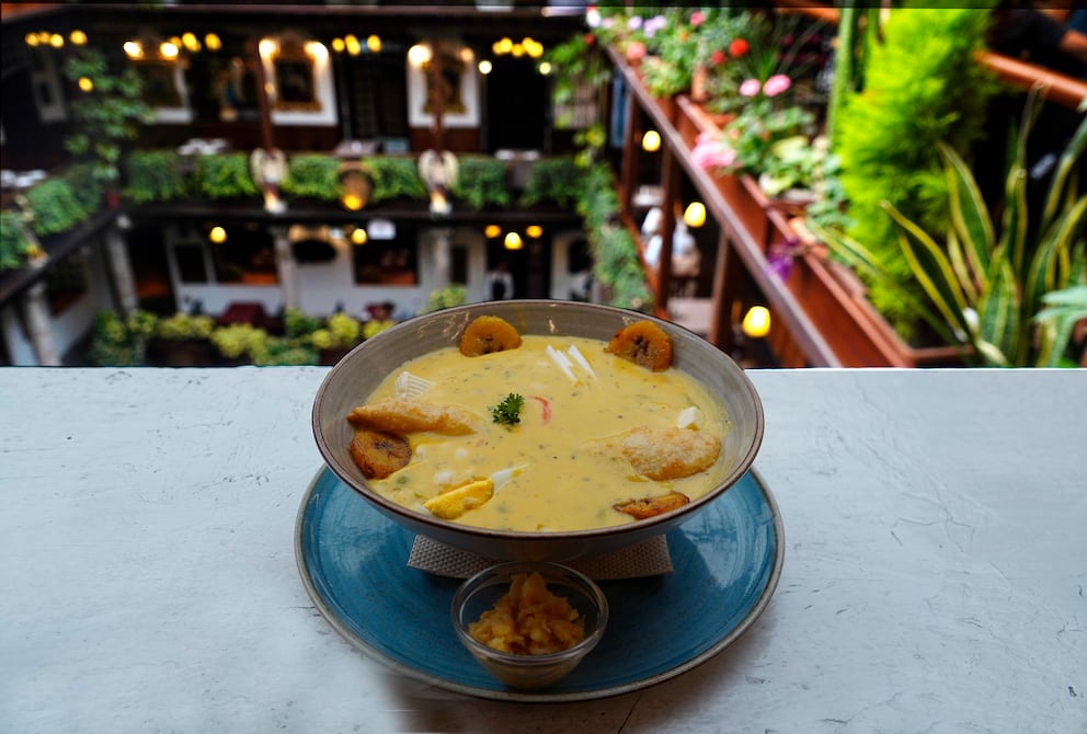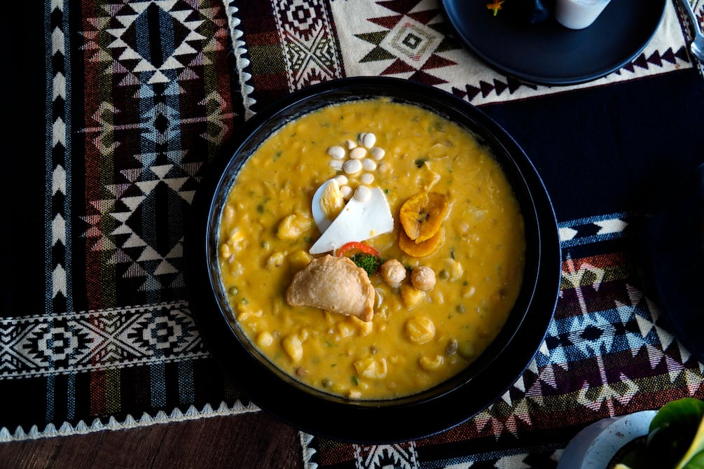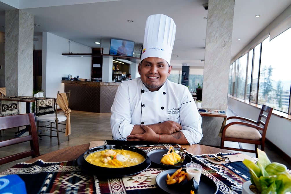 Tras un gran lobby, el ascensor marcó el piso siete. Cuando las puertas se abrieron, una gran mesa de granos daba la bienvenida a propios y extraños. La fanesca reposaba en un altar y su chef, Juan Pablo Cazar, la admiraba de lejos, permitiendo que los rayos del sol que entraban por los grandes ventanales del ‘Techo del Mundo’, saquen a relucir el multicolor del cuenco.