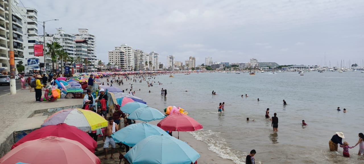 Este domingo, 4 de mayo, decenas de bañistas disfrutan del último día de descanso por el feriado del Día del Trabajo, antes del inicio del periodo escolar en el régimen Costa-Galápagos.