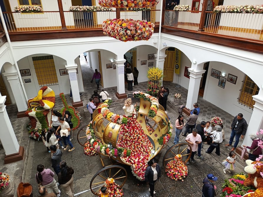 En las casas patrimoniales de Ambato se abrieron las exposiciones florales como parte de la celebración de las bodas de diamante de la Fiesta de la Fruta y de las Flores (FFF).