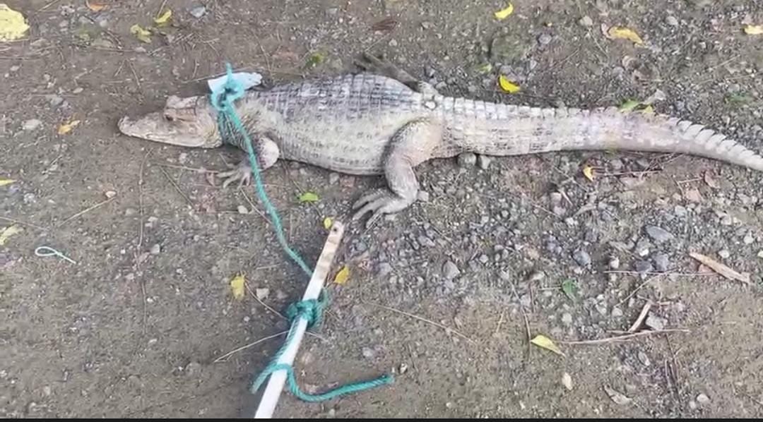 Un caimán fue hallado la mañana de este viernes, 28 de febrero, cerca del parque forestal de Portoviejo, en la provincia de Manabí.