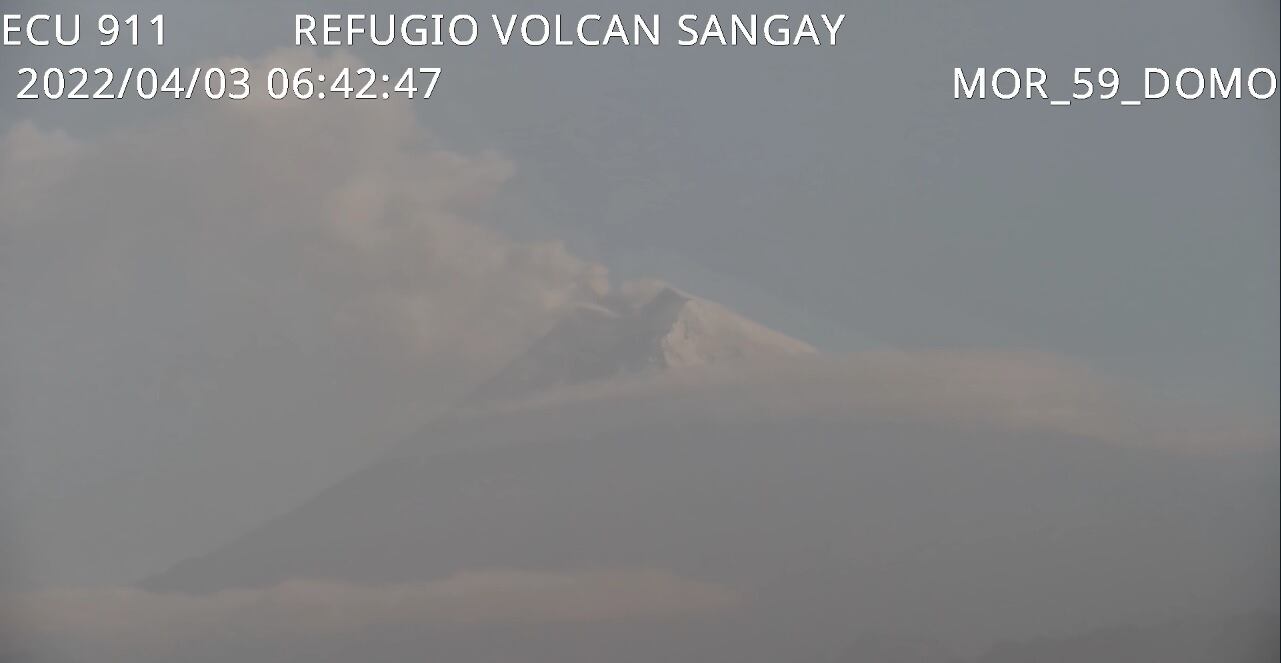 Una delgada nube de ceniza del volcán Sangay alcanzó 1.470 metros sobre el cráter, que se dirigía hacia el oeste.