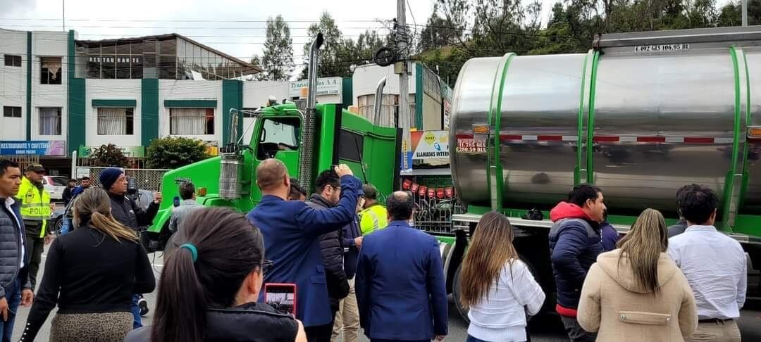 El convoy con el derivado ingresó por el puente internacional San Miguel, en Sucumbíos, continuó por la ruta Lago Agrio -Coca -Quito Tulcán - Rumichaca.