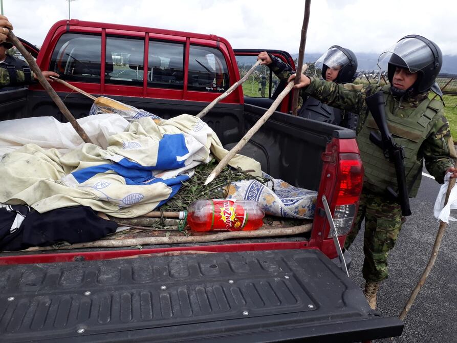 Según el Ejército, el material se decomisó a supuestos manifestantes que se movilizaban a Quito para las protestas.