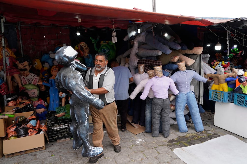 Desde el pasado domingo, Ramiro Parra exhibe monigotes que trajo de la calle 6 de Marzo de Guayaquil. Compró unos 400 muñecos, la capacidad del camión que hizo el viaje desde el Puerto Principal hasta Quito.