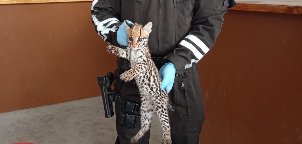 Un ocelote (Leopardus pardalis) fue rescatado de una vivienda localizada en la comuna San Pablo, en el norte de Santa Elena.