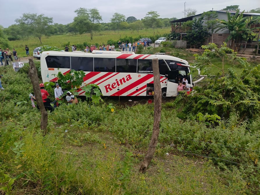 Un bus de la cooperativa Reina del Camino se siniestró en una vía cercana a la parroquia San Antonio del cantón Chone, en Manabí.
