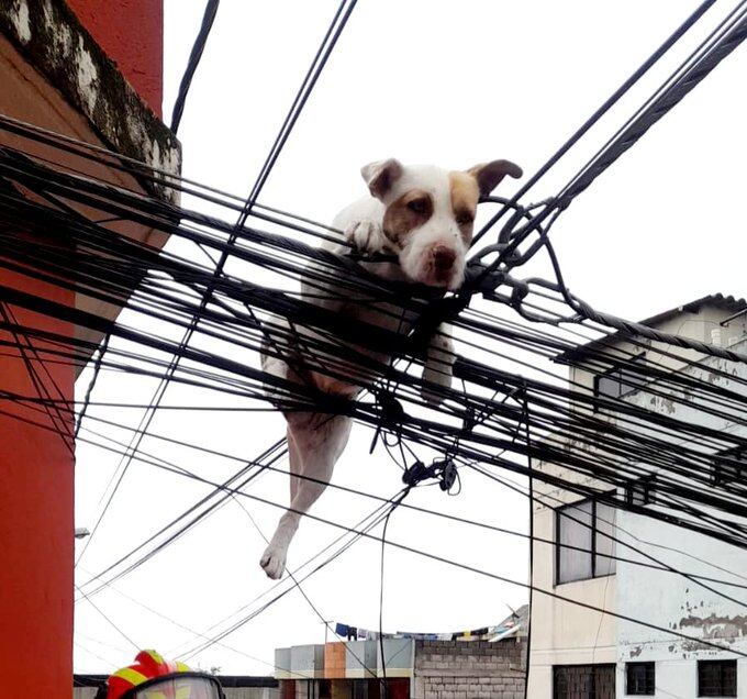 El Cuerpo de Bomberos del Distrito Metropolitano de Quito informó este martes, 30 de abril, que un perro que estaba atrapado en cables fue rescatado en el sector de Llano Grande, extremo norte de la capital.