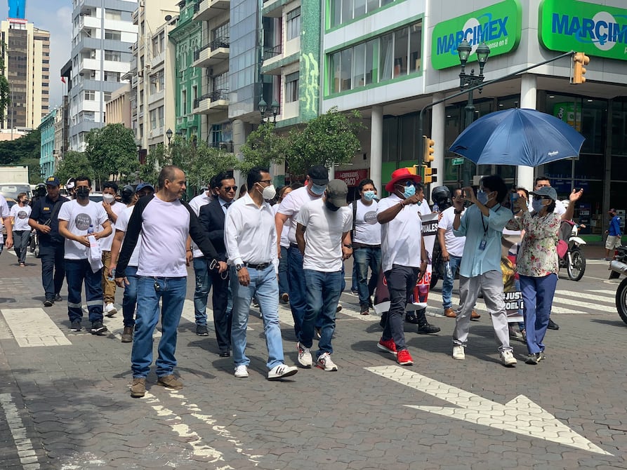 Un pequeño grupo de personas respondió a la marcha contra la inseguridad que convocó en redes sociales el actor ecuatoriano Richard Barker.