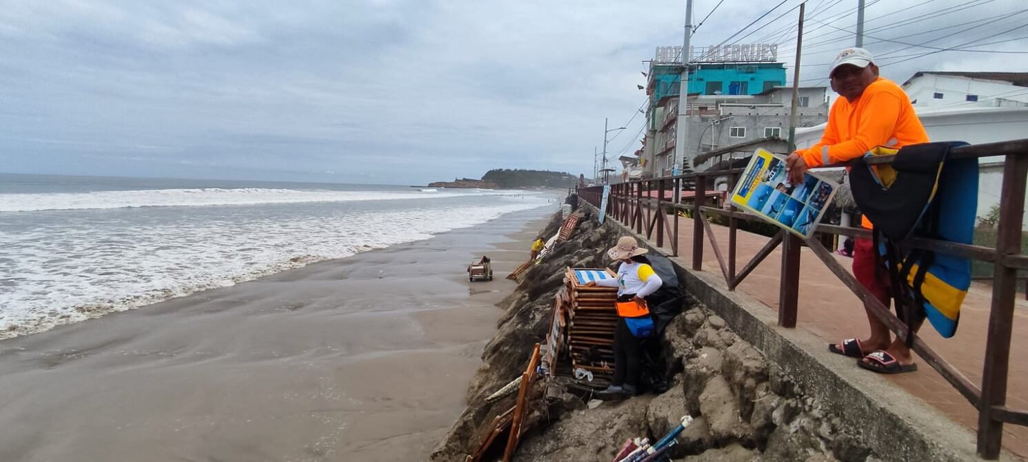 Los comerciantes de Montañita, en Santa Elena, se quedaron con las sillas, parasoles y demás productos sin ocupar ya que debido al oleaje que afectó este sábado 28 de enero a la costa continental e insular no pudieron ofrecer sus servicios turísticos.