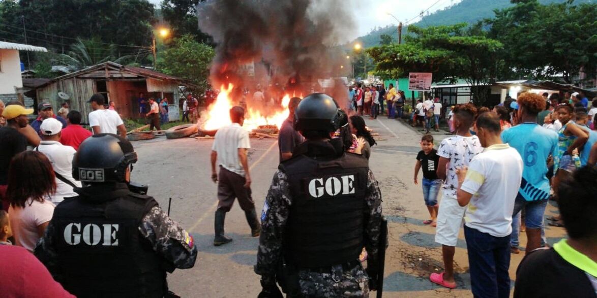 Moradores de varios recintos cerraron la carretera E20 Esmeraldas-Quinindé para exigir que culminen los trabajos de reparación de los tramos afectados de esta vía.