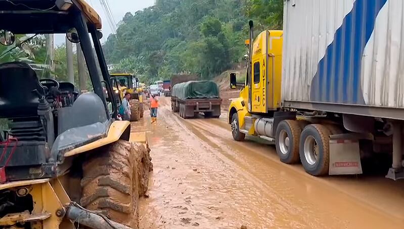Un deslizamiento de tierra y un accidente de tránsito interrumpieron el paso vehicular en un tramo de la carretera estatal Alóag-Santo Domingo, la mañana de este viernes 8 de abril.