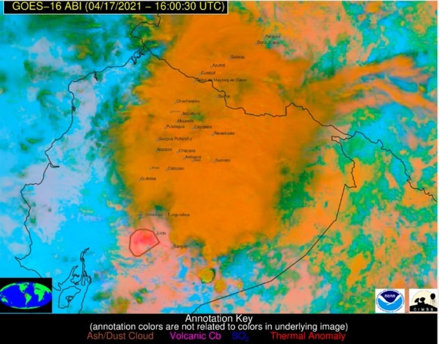 La Secretaría Nacional de Gestión de Riesgos informó hacia el mediodía este sábado sobre la caída de ceniza del volcán Sangay de manera fuerte en los sectores Atumpamba, Encalado y Chacaso del cantón Guamote, en la provincia de Chimborazo. Se solicitó a la población tomar medidas de autoprotección.