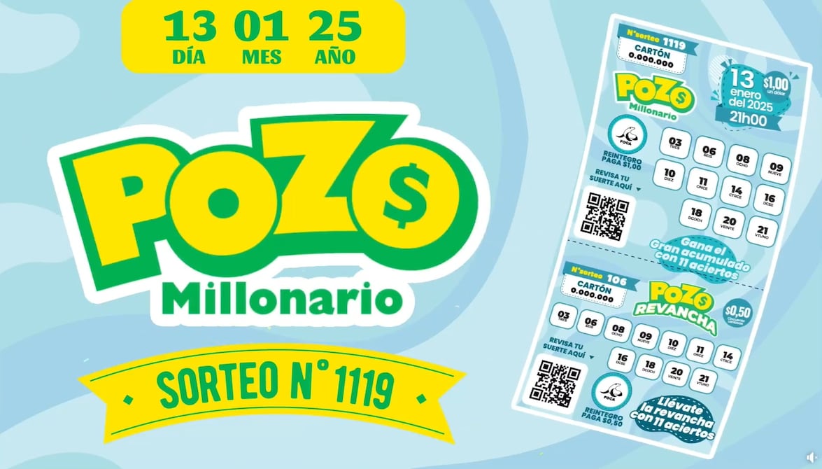 El premio del Pozo Millonario sorteo 1119 se jugó este lunes, 13 de enero de 2025, y estos son los números ganadores:
