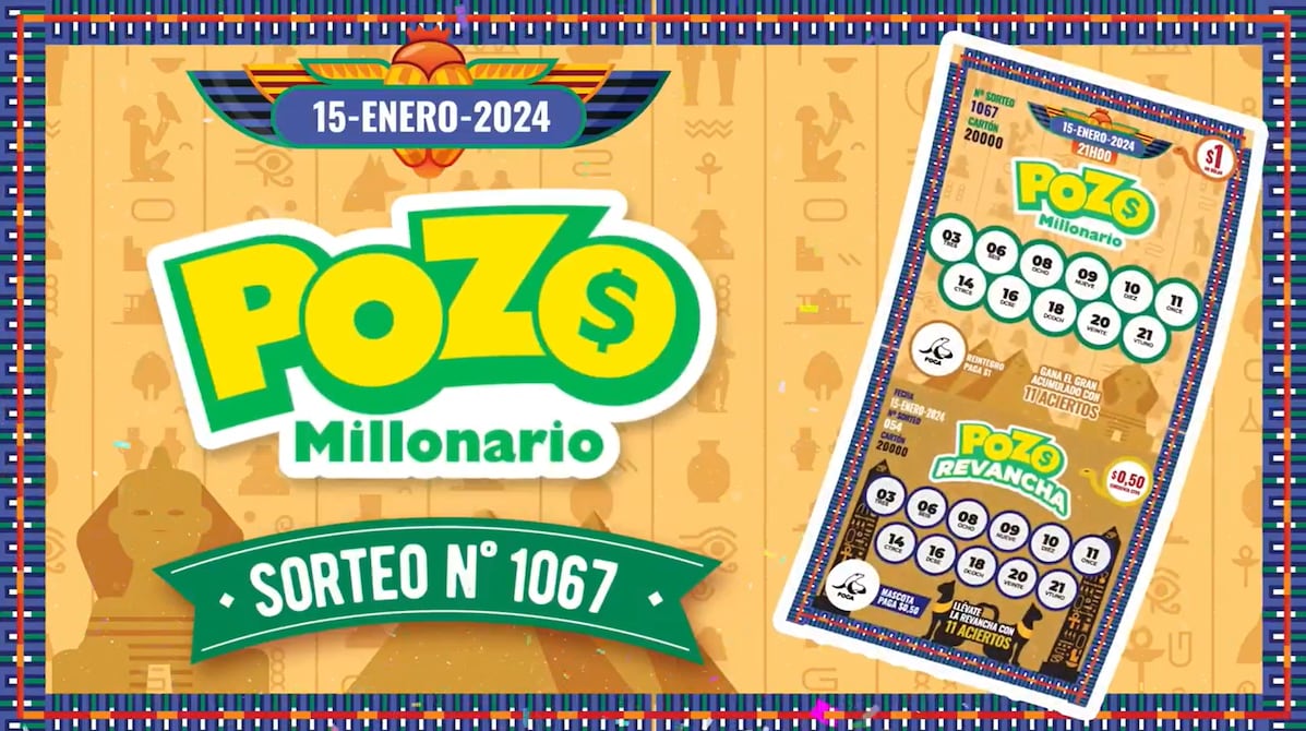 El premio del Pozo Millonario sorteo 1067 se jugó este lunes 15 de enero de 2024 y estos son los números ganadores: