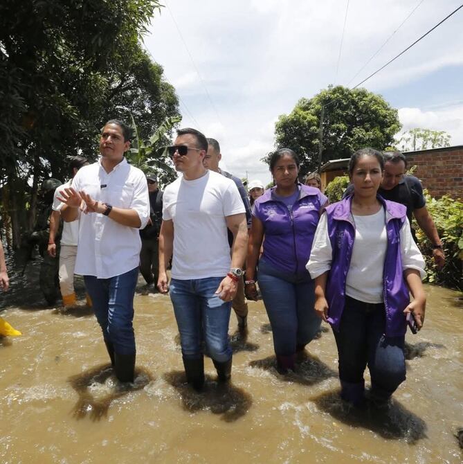 El mandatario se trasladó al cantón Bolívar, donde, según información de la Secretaría de Gestión de Riesgos, se han presentado cuatro inundaciones.