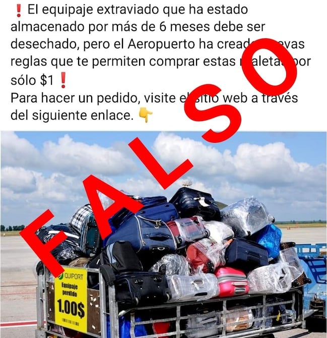Corporación Quiport, que administra y opera el aeropuerto internacional Mariscal Sucre de Quito, ubicado en la parroquia Tababela, hizo un llamado a no caer en anuncios falsos a nombre de esa compañía o de la terminal aérea.
