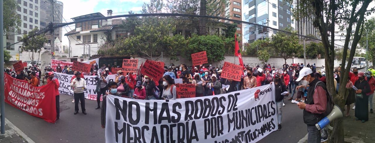Comerciantes no regularizados de Quito asistieron a la Corte Constitucional esta mañana. En el lugar se llevó a cabo la audiencia de la demanda por inconstitucionalidad de las retenciones a los productos de los vendedores autónomos que realiza el Municipio. El trámite se inició en 2018 y desde ahora el juez tendrá hasta ocho días para dar su fallo, explicó Rodrigo Guarderas, representante de la Asociación de Trabajadores Autónomos (Asotrab).