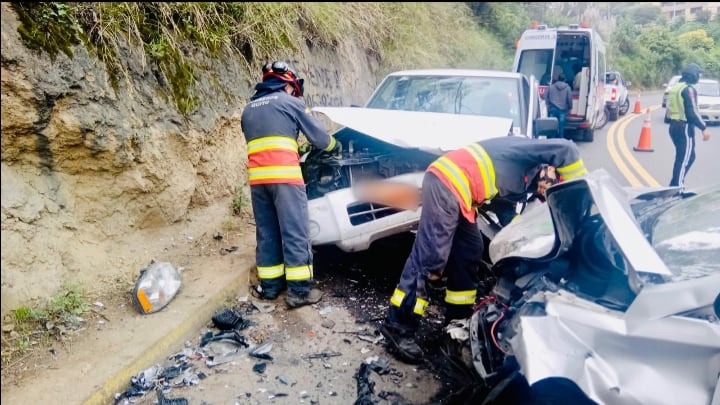 Un camión perdió pista en el kilómetro 7 en la vía a Papallacta y cayó a una quebrada de aproximadamente 100 metros.