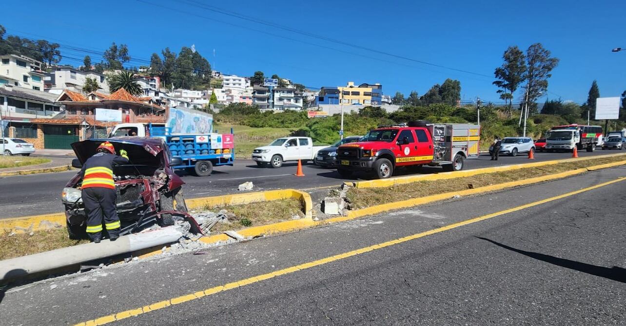 A la altura del puente 9, en la Autopista General Rumiñahui, un siniestro de tránsito se perpetró en el carril del medio. El conductor de un vehículo liviano perdió pista y se impactó de frente contra un poste de luz.