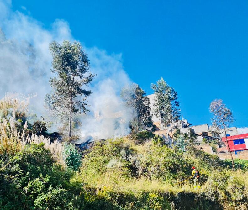 En el sector de Buenaventura de Chillogallo, en el sur de la capital, se generó un incendio en un bosque con una pendiente de 90 grados. Esto imposibilitó el trabajo del Cuerpo de Bomberos en la zona.