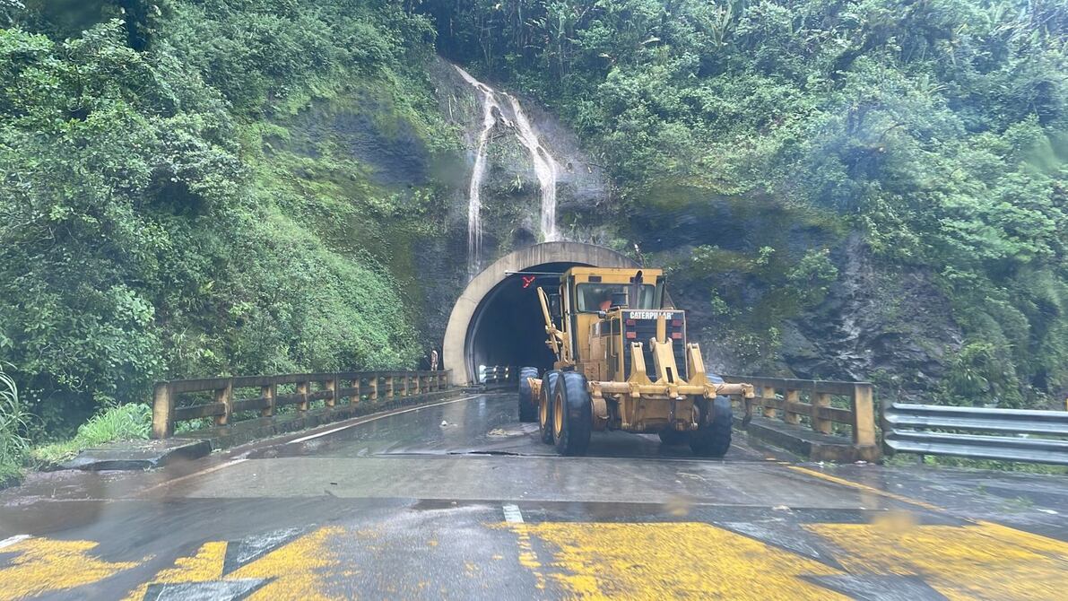 La vía Alóag - Santo Domingo se encuentra parcialmente habilitada en el kilómetro 22 por caída de rocas.